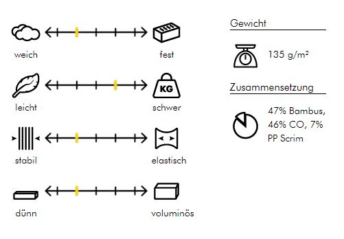 • Sehr weicher, angenehmer Griff durch Einsatz von Naturfasern