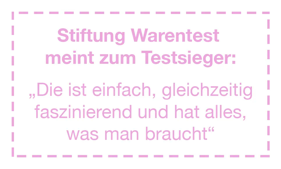 Stiftung Warentest meint zum Testsieger: "Die ist einfach, gleichzeitig faszinierend und hat alles was man braucht"