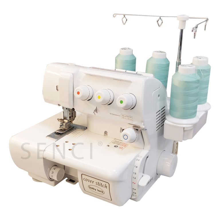Die baby lock cover stitch (BLCS) ist auf diese Stiche spezialisiert. Mit dem einfachen und genialen Jet-AirTM-Einfädelsystem lässt sich Ihr Garn kinderleicht einfädeln. Ihre besondere Stärke liegt in ihrer Kraft und Zuverlässigkeit - sowohl bei festen, dehnbaren Stoffen oder sogar Quernähten. Ein weiteres Highlight bietet sie mit einem absenkbaren Transporteur. Beim Lüften des Nähfußes senkt sich dieser automatisch ab und optimiert das Herausnehmen und Einlegen der Stoffe. Der verstellbare Differentialtransport (0,6 – 2,0 :1) ermöglicht einwandfreie Nahtbilder.