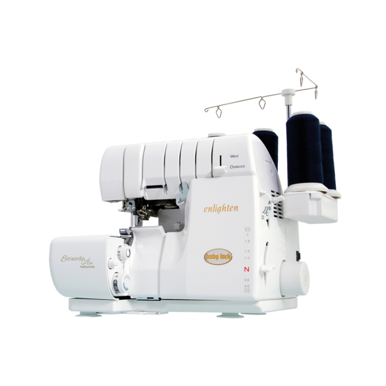 Enlighten ist eine Overlock, welche über das ExtraordinAirTM-Einfädelsystem und das automatische Fadenzufuhrsystem verfügt.