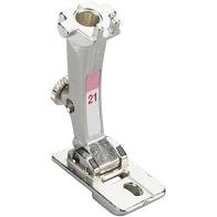 Der Schnuraufnähfuss #21 erleichtert das Aufnähen von dünnen Bändern, Kordeln und Litzen. Auch für Arbeiten mit Posamenten, Tressen und Schnurapplikationen ist der Schnuraufnähfuss #21 ideal.