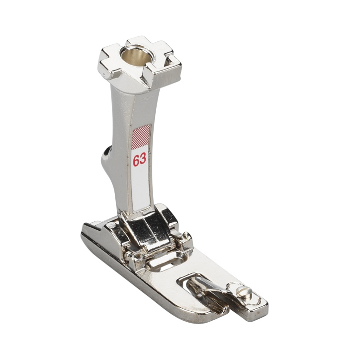 Das Ergebnis ist ein robuster, schmaler Saum. Der Zickzacksäumer #63 ist ideal zum Säumen von feinen Stoffen. Ausserdem kann er im selben Arbeitsgang dekorative Spitzenkanten annähen.