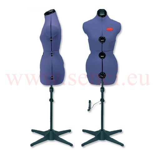 Drehbare 8-teilige Büste mit integriertem Nadelkissen am Halsbereich, stabilem Kunststoff-Standfuß und Rockabrunder mit Stecknadelfixierung